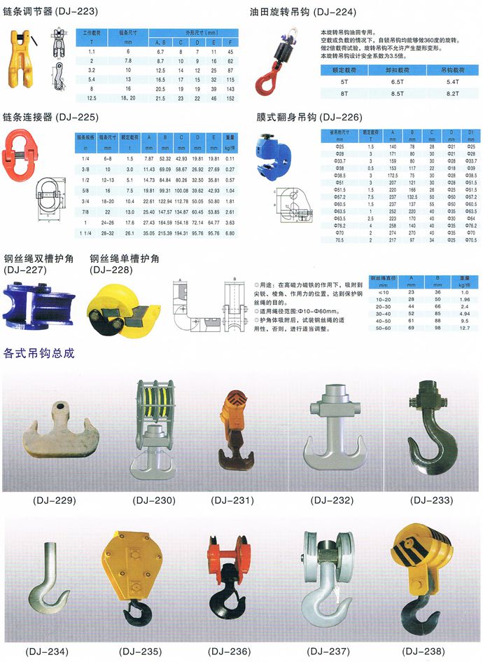 吊鉤主要有:旋轉(zhuǎn)吊鉤、美式貨鉤、眼型貨鉤、環(huán)眼貨鉤、S鉤、鼻形鉤、直柄吊鉤、羊角樺鉤、羊角抓鉤等。