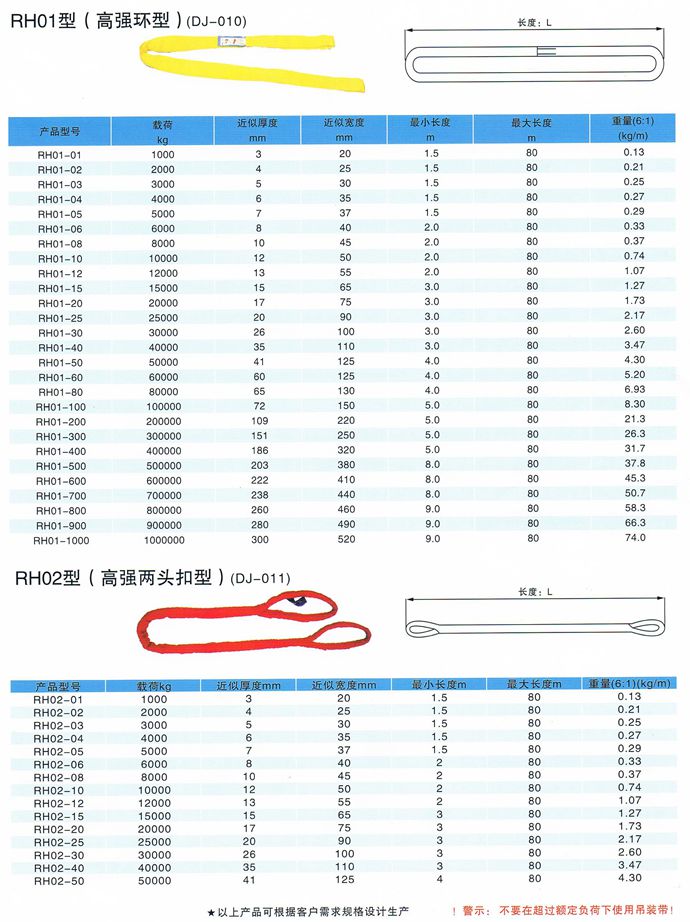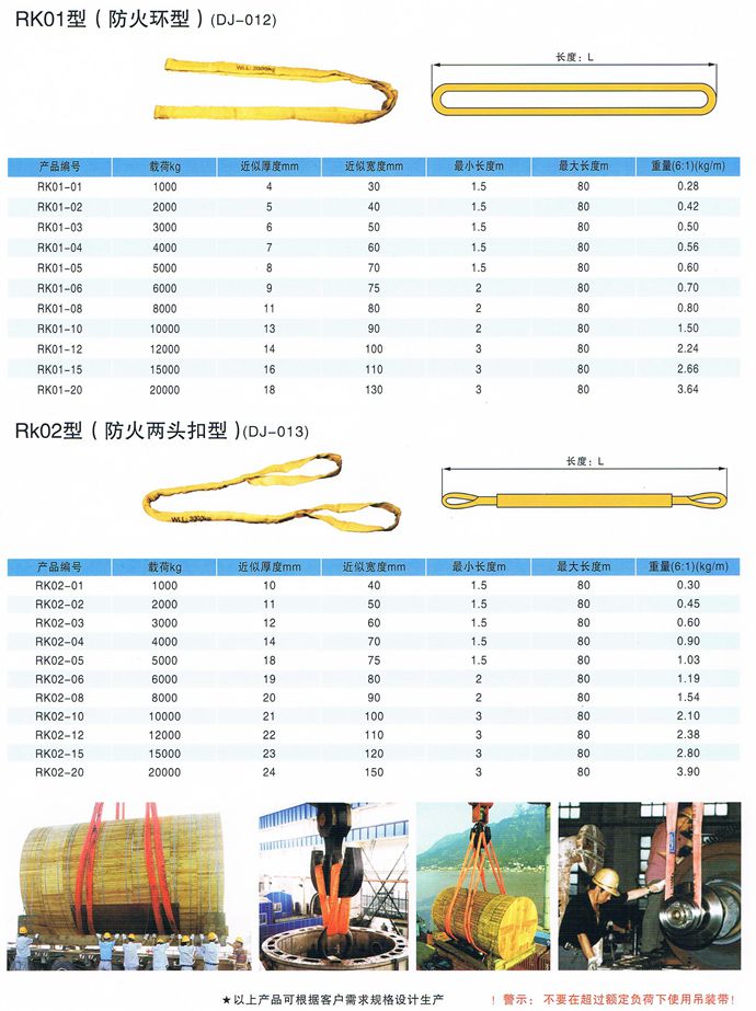 柔性吊裝帶不導(dǎo)電,無觸電危險,柔性吊裝帶是采用PES制成,內(nèi)部承載芯采用無極環(huán)繞以構(gòu)成循環(huán)狀PES織成不受力的套管對承載芯加以保護。柔性吊裝帶外表面光滑,對平滑的物體不會造成損傷,對易損物體不會造成損傷,適用于圓環(huán)形物體的吊裝,柔性吊裝帶負荷0.5-500噸,有效長度0.5-80米,符合中國行業(yè)標準JB/T8521-2007 ,柔性吊裝帶的彈性伸長較小,工作載荷下< 2%,斷裂載荷下<12% 14、使用的溫度范圍—40℃—180℃。